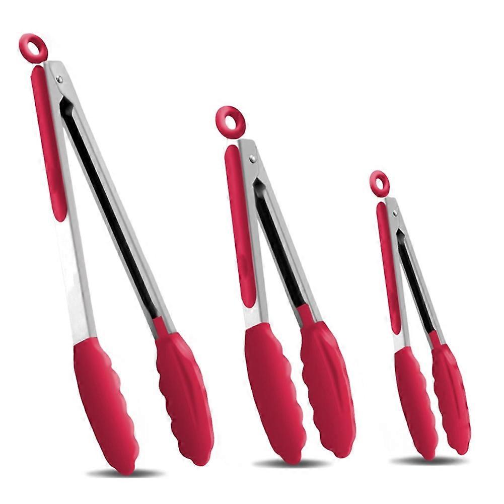 3-Piece Premium Stainless Steel Locking Kitchen Tongs with Silicon Tips, Set of 3-7inch, 9inch and 12inch Red