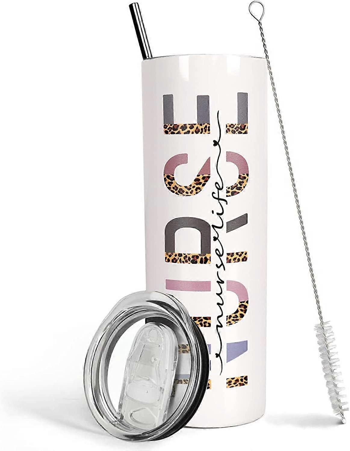 Nurse Tumbler with Lid and Straw,Nurse Life Cup School Leopard Nurse Coffee Mug,Cup,Water Bottle,Skinny Tumbler,Nurse Gifts for Women 20 Oz Stainless