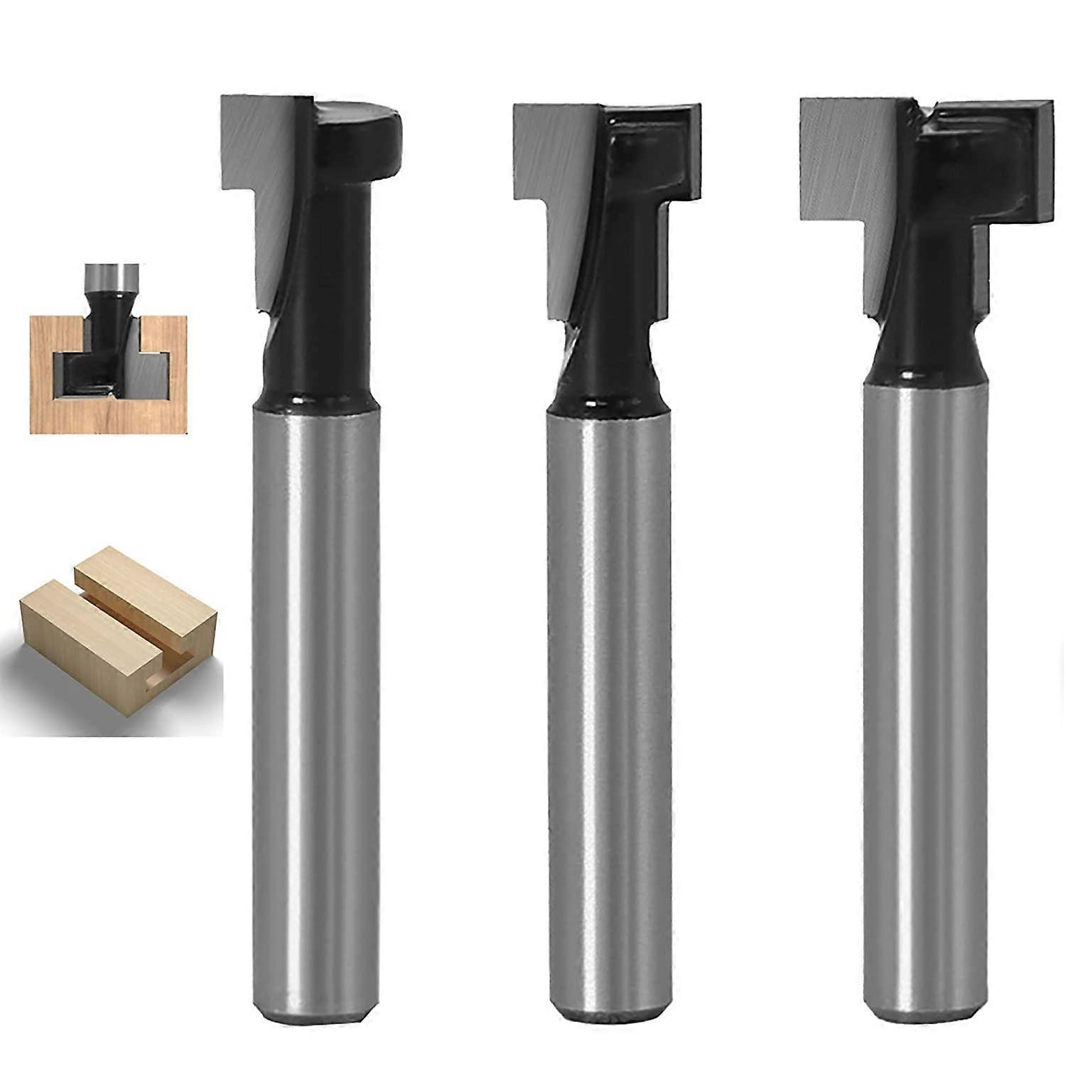 mm Shank T-Slot Cutter Router Bit Set 3 Piece Cutter Shank Cutter Router 5/16 inch, 3/8 inch and 1/2 inch T Impact Cutter Woodworking Tools