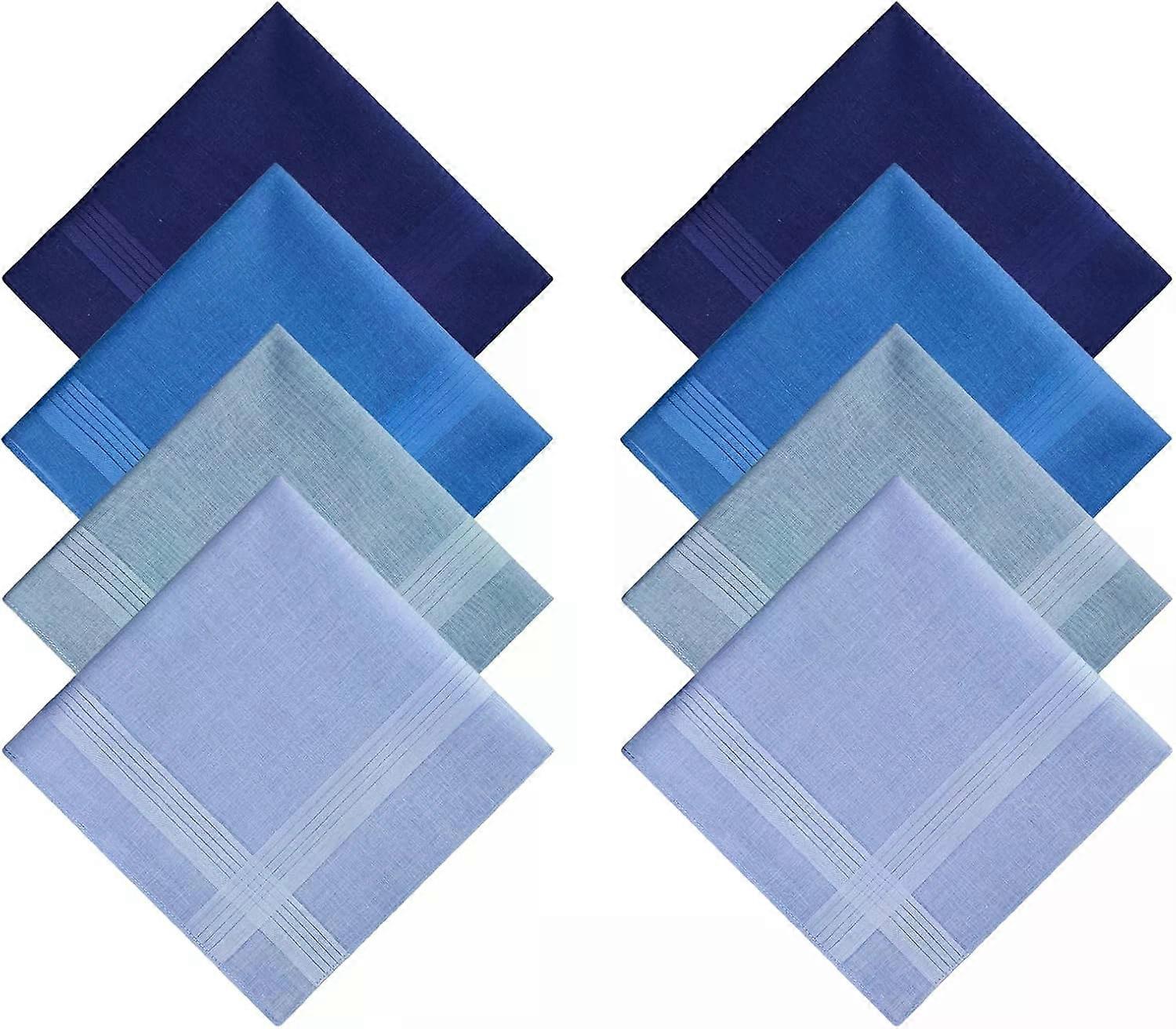 Soft cotton handkerchiefs absorb sweat and wipe hands/face effectively. Features 8 pack, 16 inch large size for ample use. Breathable, durable, reusable, eco-friendly. Ideal for daily wear, business, travel, or as a practical gift for men.
