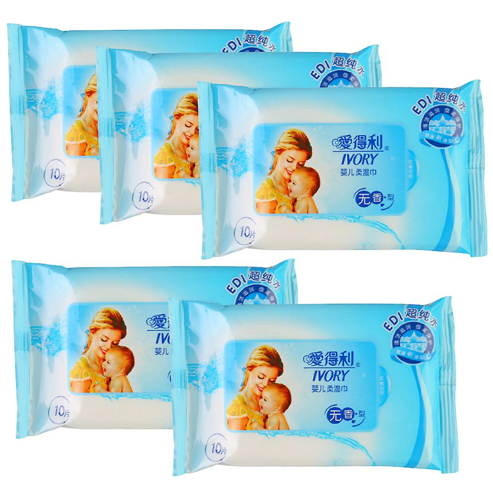 Portable Baby Wet Wipes Infants Newborn Hands Face Body Cleaning Moist Toilet Papers\n\nFragrance Free10 Sheets \/ Pack 5Packs