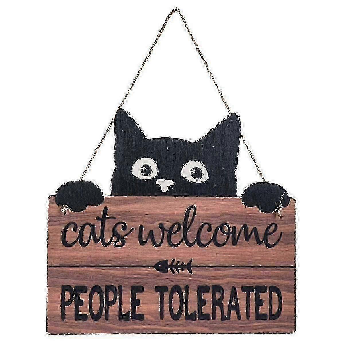 Suitable for Funny Cats Welcome Sign, Cats Welcome People Tolerated Kitten Wooden Plaque, Black Cats Wall Decor