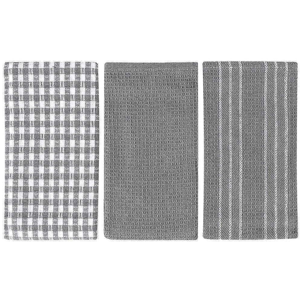 Towels,natural Cotton,18 X 25 Inch,3 Pack,white With Grey Stripe