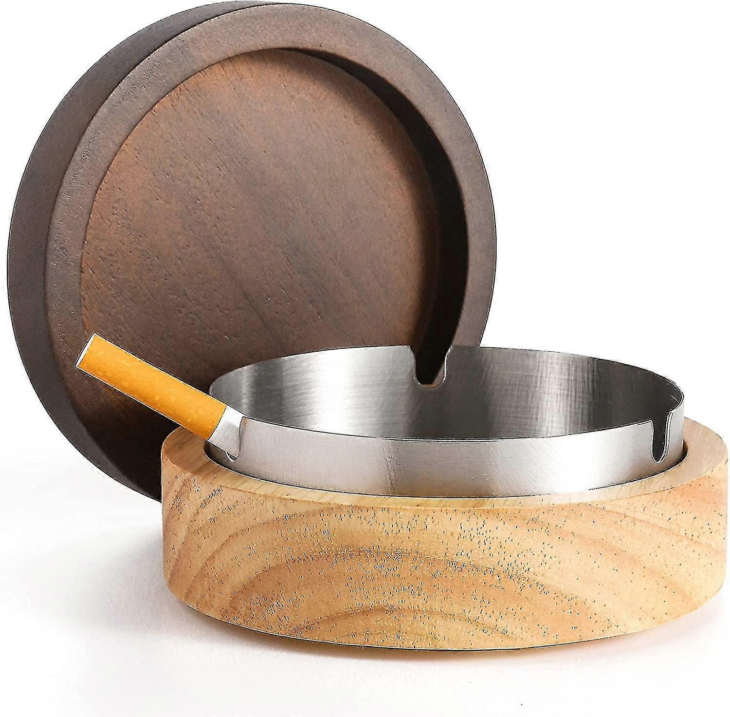 Cute Ashtrays For Cigarettes Ash Tray With Lid Wooden Ashtray With Stainless Steel Portable Decorative Ashtray Windproof Ashtray For Home,patio,offic