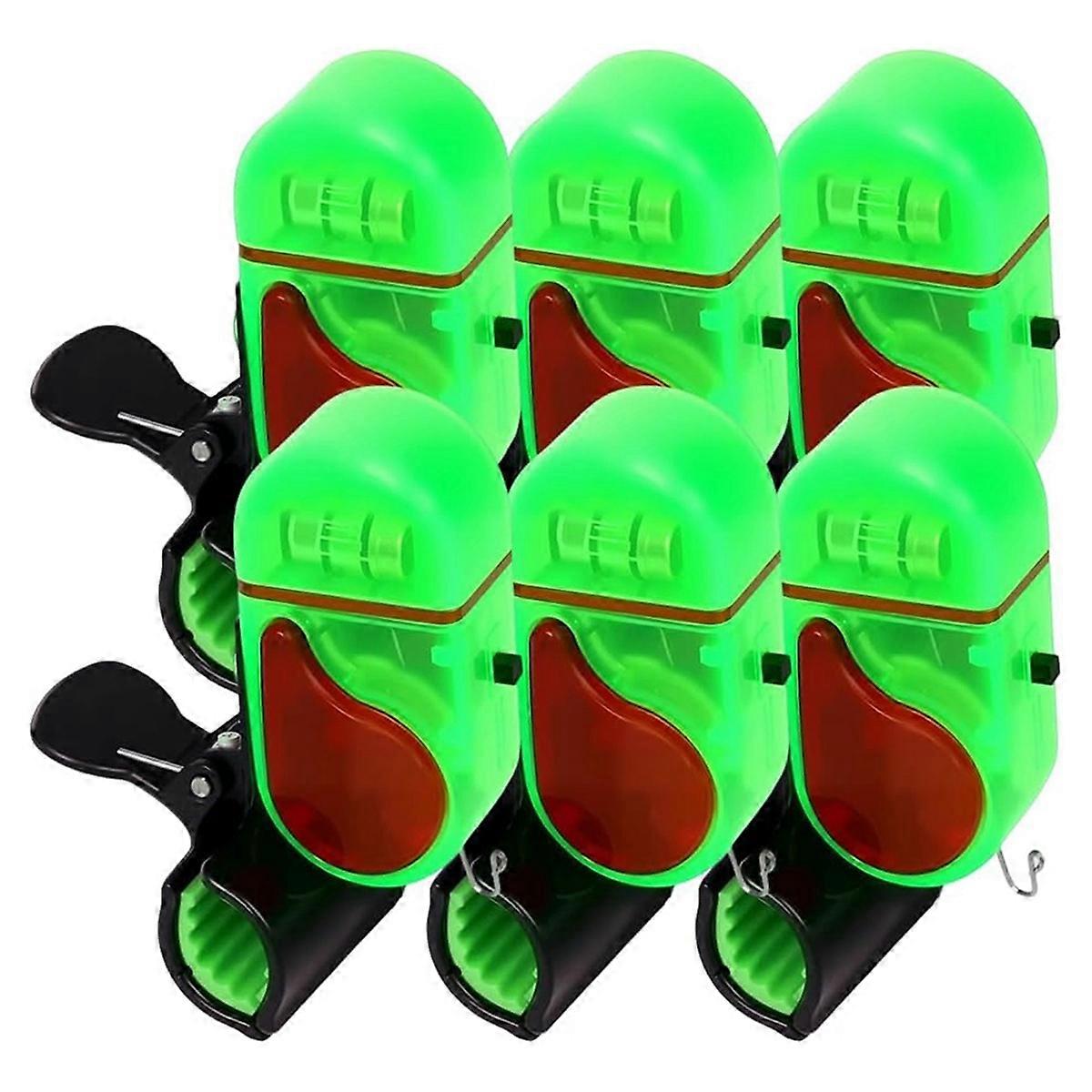 [Highly Sensitive Bite Detection] This electronic fishing alarm instantly alerts you with sound and LED light when a fish bites, ensuring you never miss a catch, even in the dark. [Bright LED Light for Night Fishing ]Equipped with a high-visibility LED light, this alarm makes fishing at night or in low-light conditions easier and more effective. [Loud Sound Alert]The built-in alarm produces a clear, loud sound to notify you of activity, allowing you to relax while waiting for your next big catch. [Easy to Install and Universal Fit]Designed to clip securely onto all types of fishing poles without causing damage, making it ideal for beginners and experienced anglers alike. [ and Weather-] Made with , water- materials, this bite alarm is built to withstand different weather conditions for long-lasting use. Fishing Bite Alarm with LED Light, 2025 Fish Bite Alarm Sound Bite Alert Bell with LED Lights, Sensitive Electronic Fishing Alarms Indicator For All Fishing Poles Name:Fishing Bite Alarm With LED Light Specification:6PCS Colour:Green Material:plastic Package Contents: 6 x Fishing Bite Alarm Only the above package content, other products are not included. Note: Light reflection and different displays may cause the color of the item in the picture a little different from the real thing. The measurement allowed error is +/- 1-3cm.