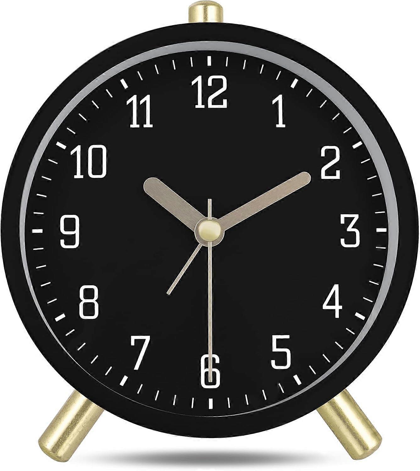 Classic metal analog non-ticking alarm clock, milk white silent alarm clock with light, simple modern decorative table clock for bedroom bedside 11cm
