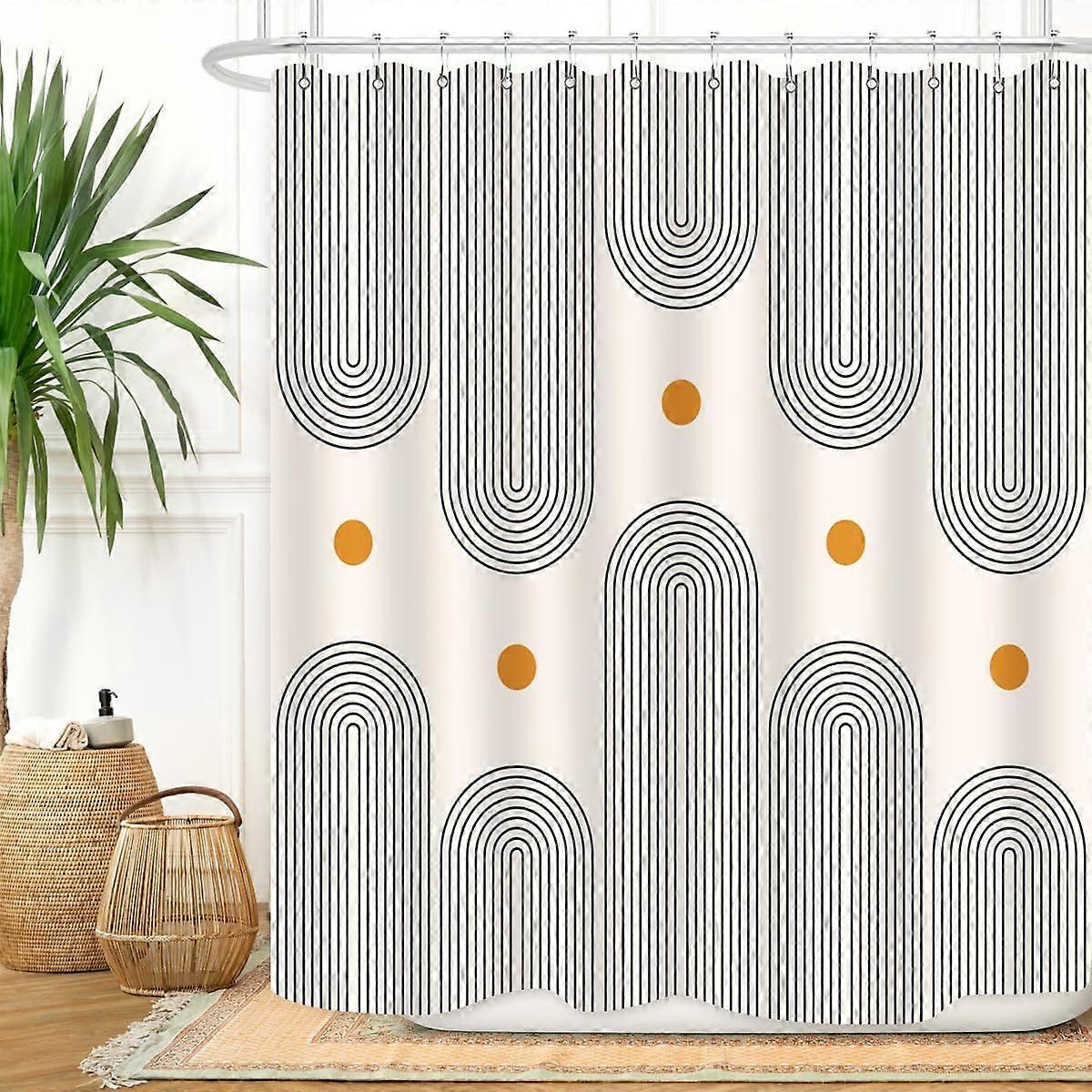Mid Century Shower Curtain Boho Minimalist Abstract Arch Sun Simple Lines Geometric Modern Beige Bathroom Decor Waterproof Fabric 72Lx60W Inch with 12