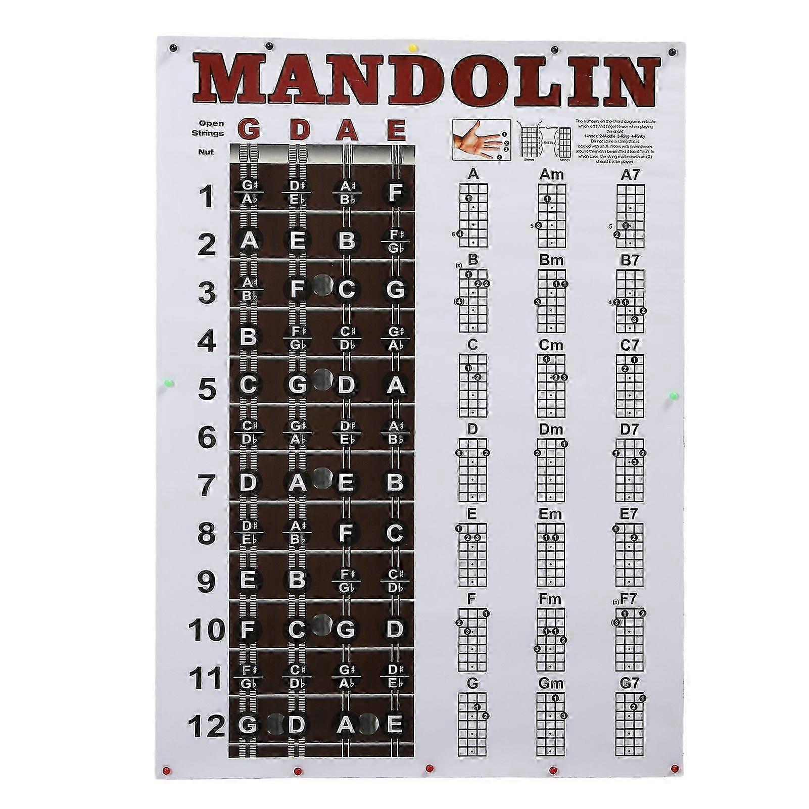 Mandolin Chord Chart Poster HD Color Prints Mandolin Fretboard Notes for Beginners Professionals