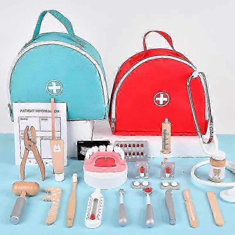 Children's wooden play house holding medical bag cloth bag role playing doctor toy simulation tooth model stethoscope toy