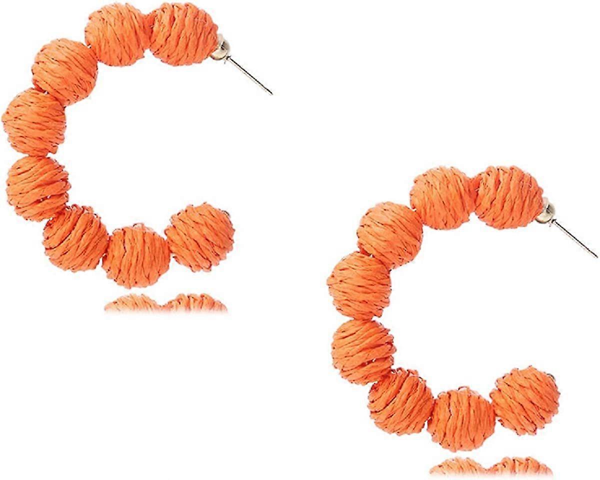 Handwoven Long Natural Rattan Raffia Ball Drop Dangle Earrings Boho Braid Straw Wicker Beaded