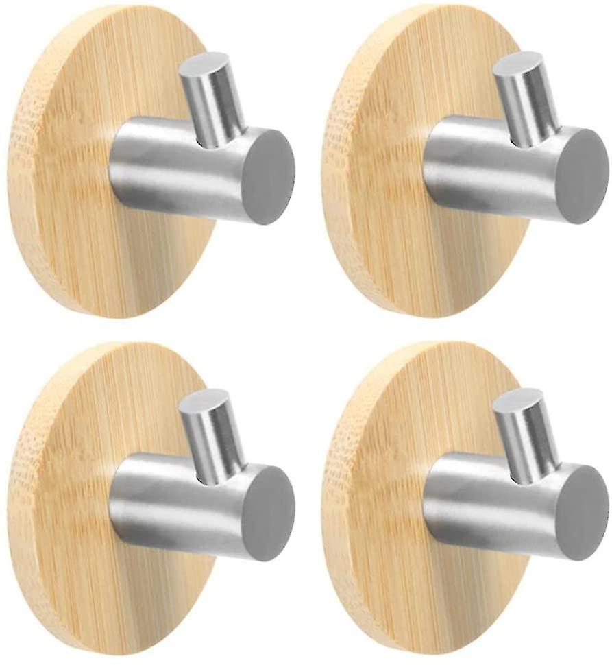 Bathroom Towel Hook 4 Pieces Wooden Coat Rack Bamboo Wall Hook Adhesive Hook Bathroom Towel Hook