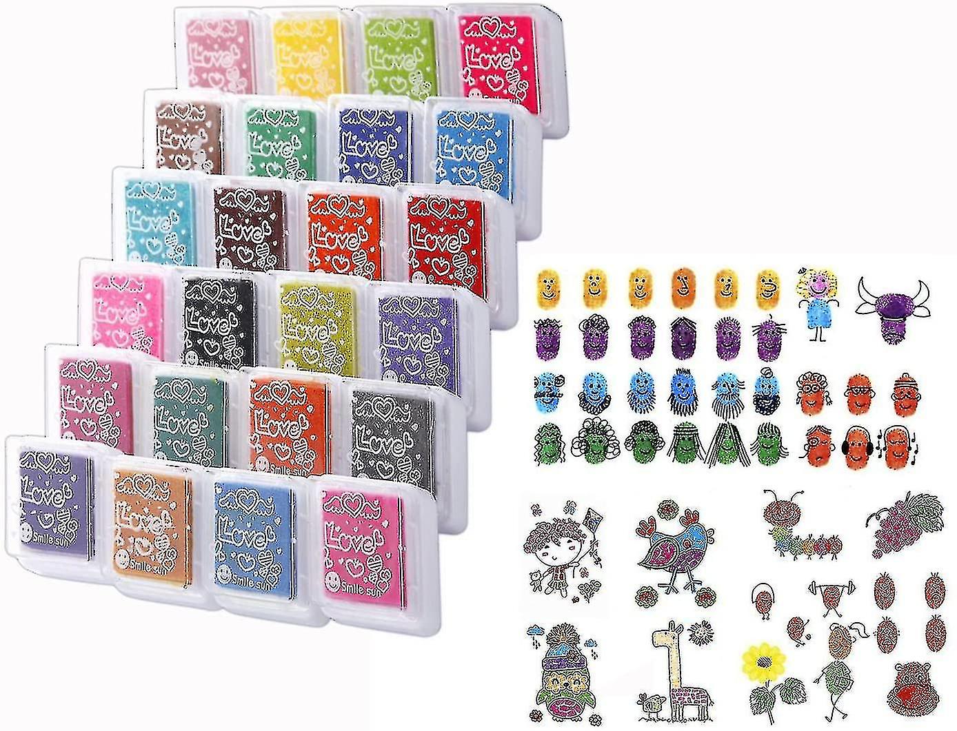 Ink Pads, 24 Colors Fingerprinting Ink Pads Imprint Ink, Craft Stamps And Card