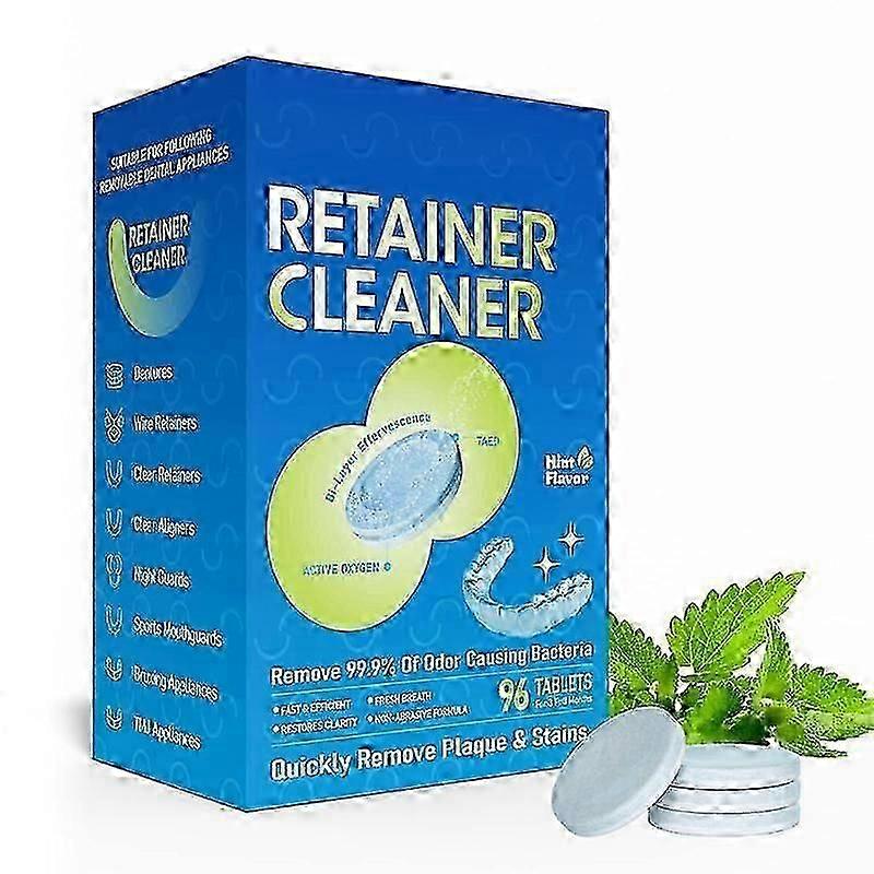 Retainer Cleaner 120 Tablets, 4 Month Supply, Night Denture Cleaner and Mouth Guard, Denture Cleaner, Removes Odors, Stains, Plaque, Mint Flavor
