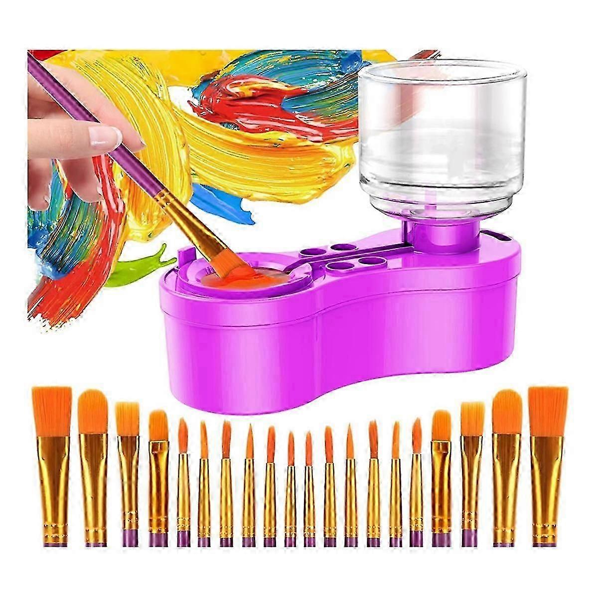 Paint Brush Cleaner With 20 Paint Brushes, Paint Brush Set Flush With Drain And Brush Holder For Ac