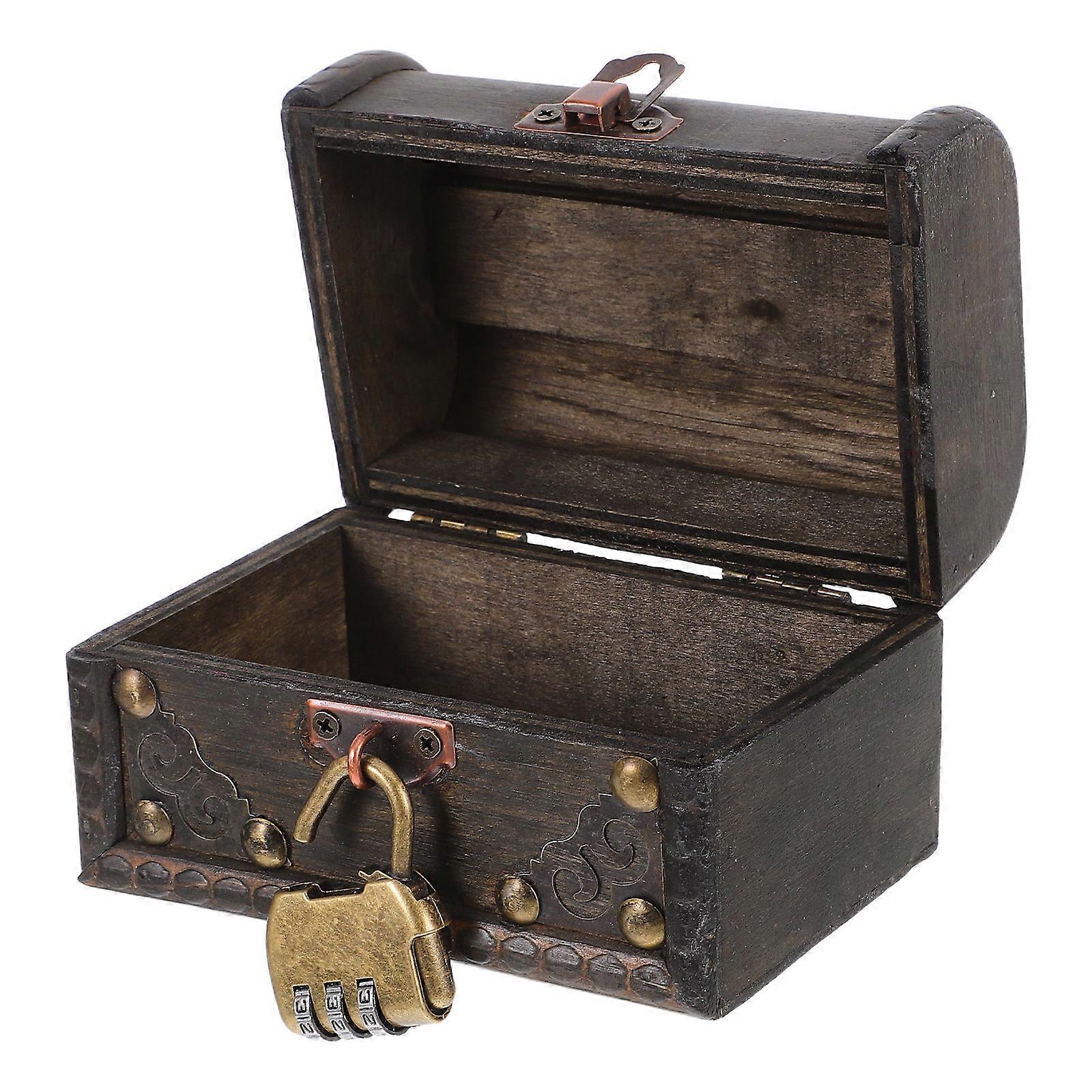 Antique Wooden Jewelry Organizer with Lock – Retro Storage Chest for Escape Rooms & Home Decor – Vintage Keepsake Box for Trinkets & Accessories