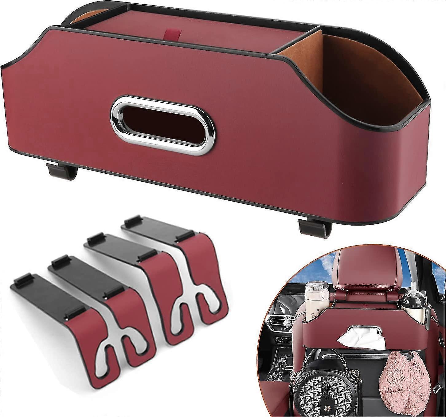 Car Back Seat Organizer With 2 Drink Cup Holder, Vehicle Multifunctional Storage Box, Car Tissue Box Partition Design