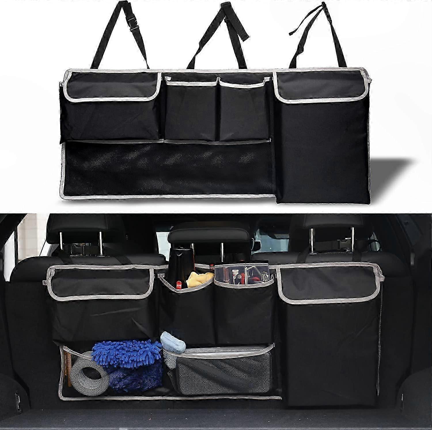 Vehicle Storage Organizer, Hanging Backseat Bag with 4 Pockets and 2 Mesh Compartments for Interior Use