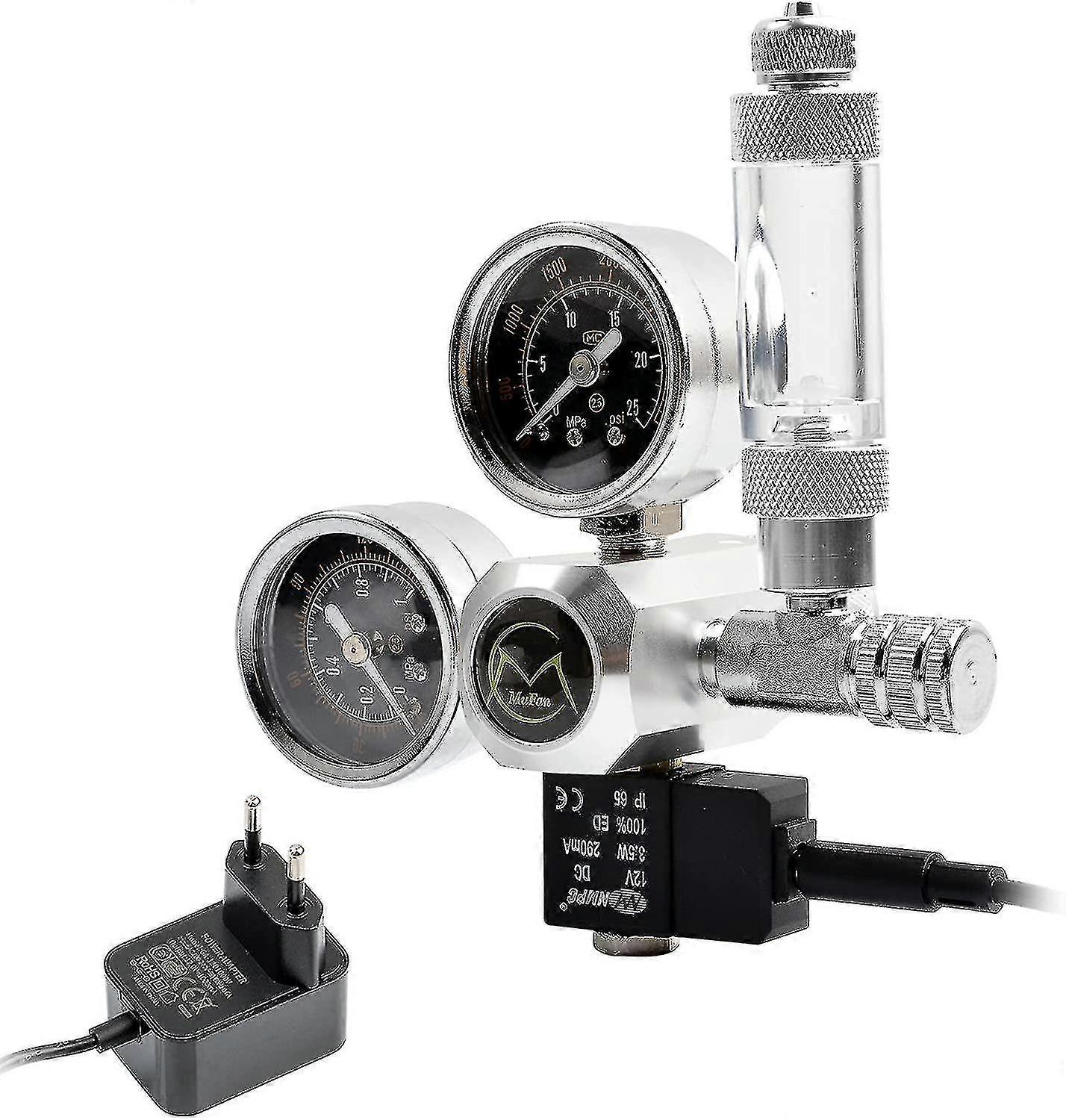 Aquarium Co2 Regulator With 12v Adapter, Aquarium Pressure Reducer, Dual Pressure Gauge Includes Bubble Counter And Check Valve, W21.8 Interface