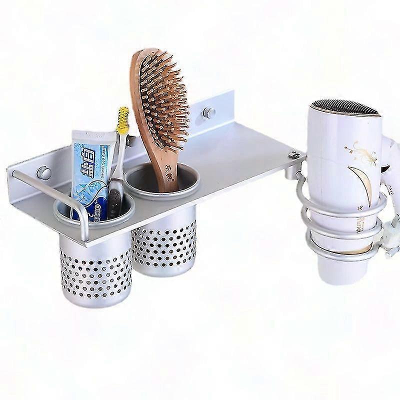 Wall Mount Hair Dryer Holder Organizer, Aluminum Rack with 2 Storage Cups for Bathroom
