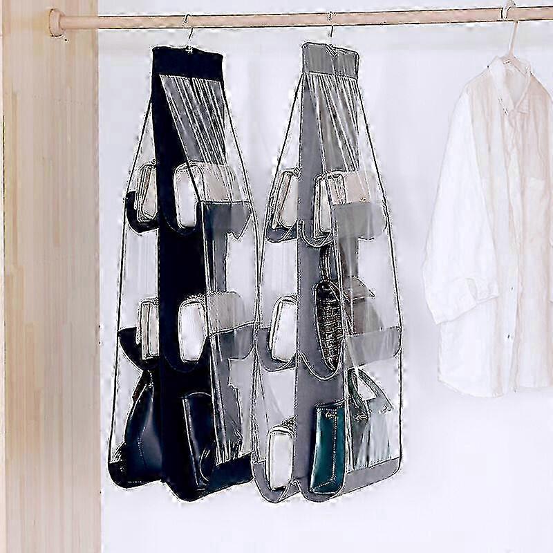 Hanging Handbag Organizer, 2pcs 6 Dustproof Pockets, Wardrobe Storage Bag(Black+Gray)