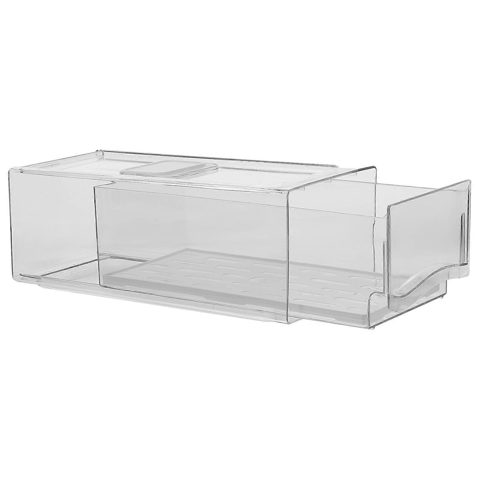Transparent Fridge Drawer Organizer with Drain Plate for Neat Kitchen and Fresh Food Storage 14.5x9.8x5.3 Inches