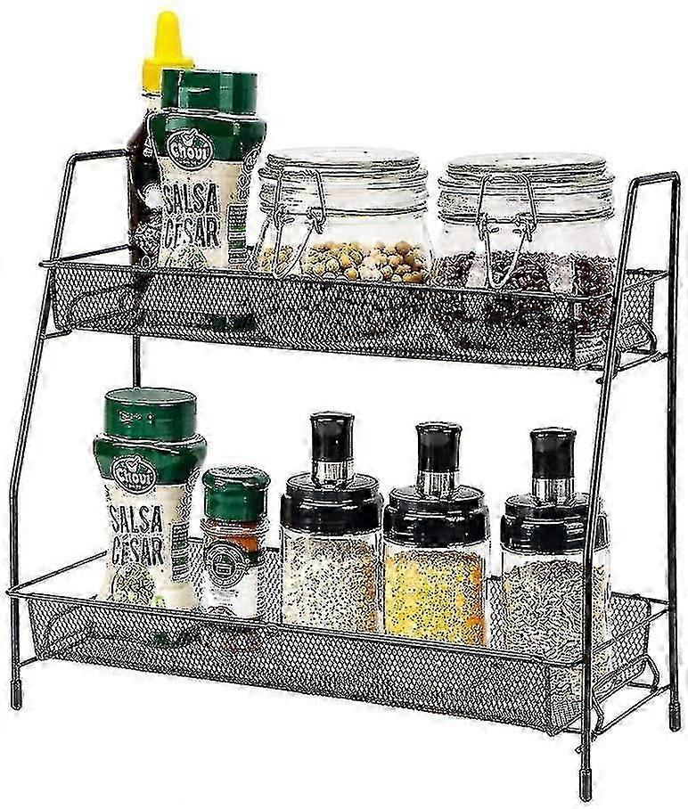Countertop Spice Rack Organizer & 2-Tier Bathroom/Office Storage Shelf - Compact Rack for Kitchen, Bath, & Bedroom Organization