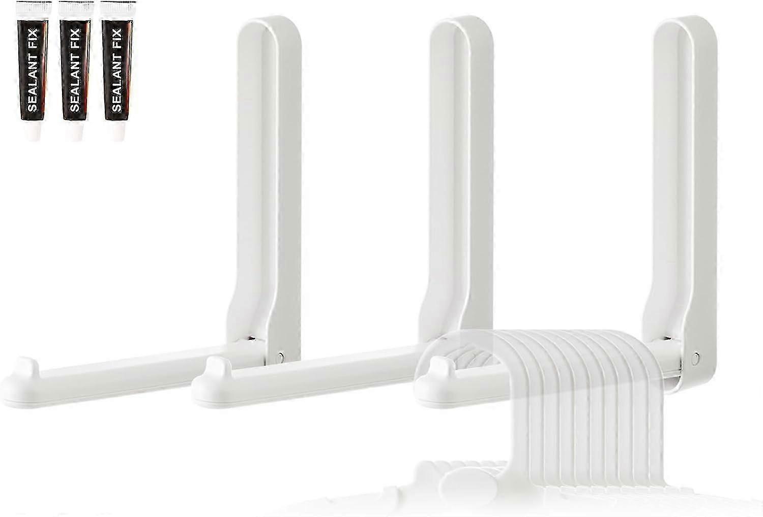 3 Piece Rack Organizer, Plastic Foldable Clothes Rack Storage Rack for Closet Laundry, Wall Mounted with Adhesive Tape, Space Saving Clothes Racks