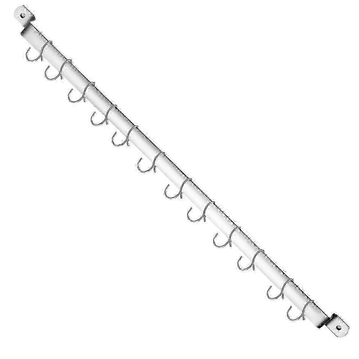 Wall-mounted rail organizer with 14 hooks for hanging mugs spatulas and pots kitchen utensil rack