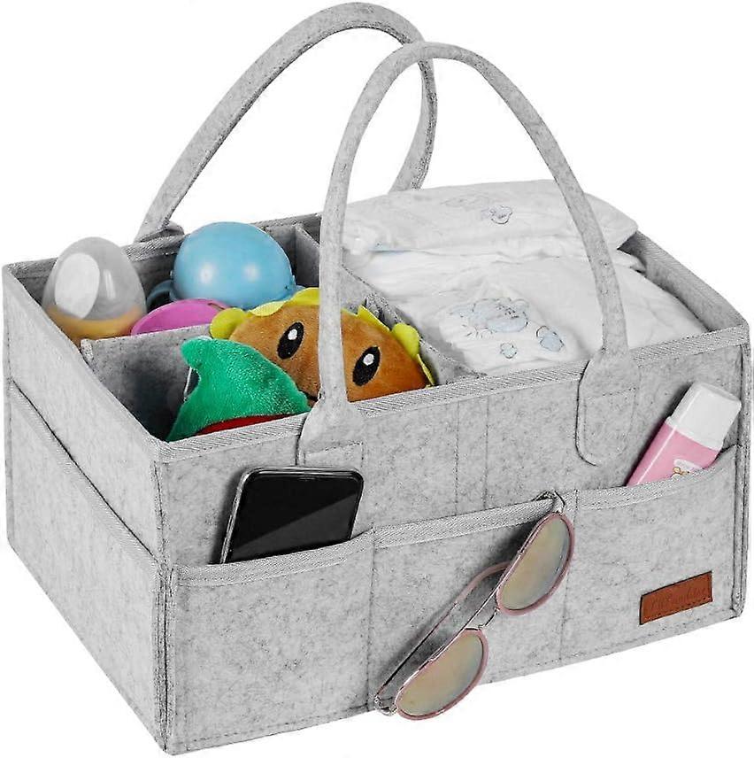 Box Organizer, Portable Kids Room Storage Box Felt Basket with Multiple Pockets and Interchangeable Compartments, Baby Wipes Bag Diaper Storage Bags