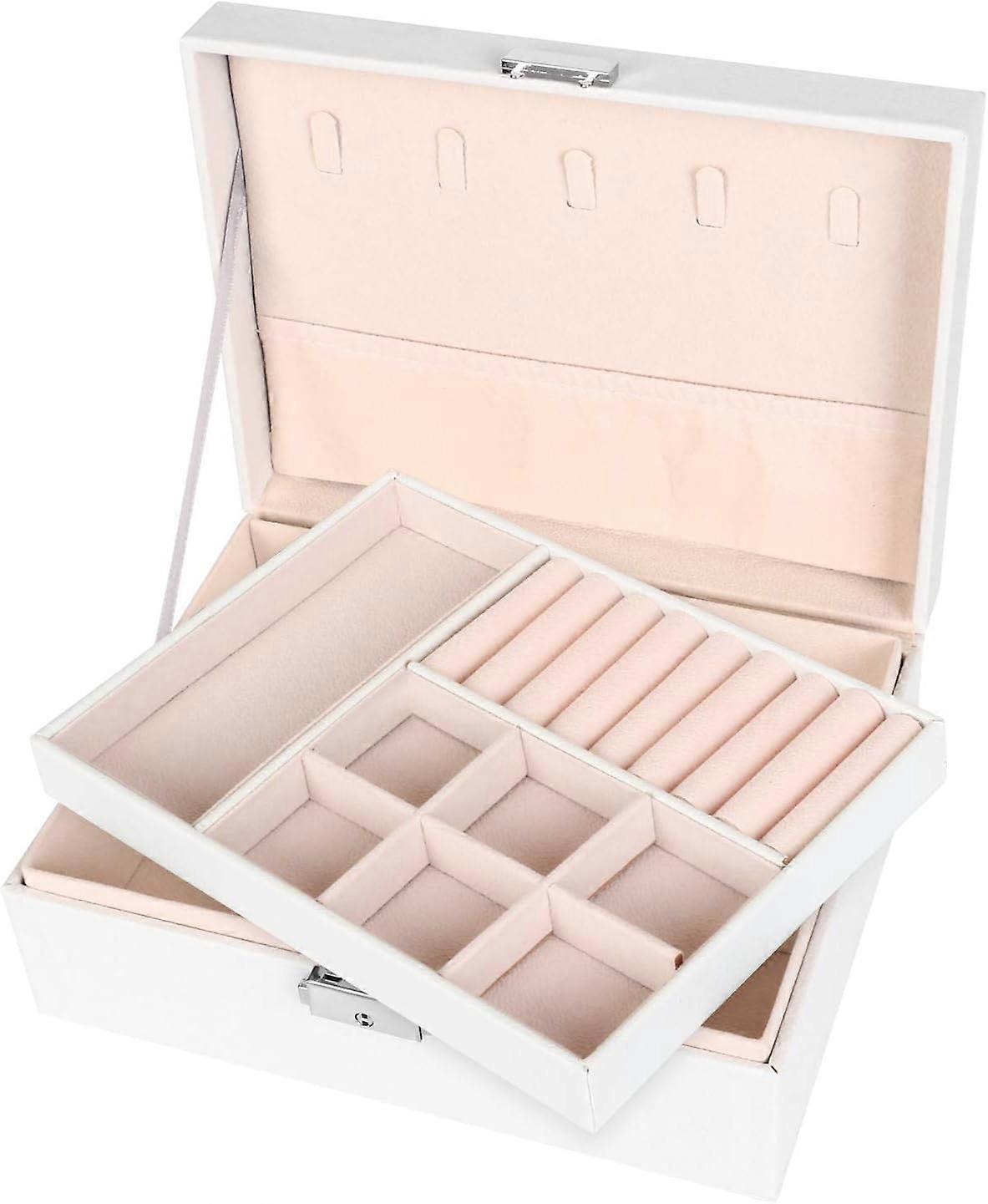 Jewellery Box Organizer, 2-Layer Lockable Jewellery Box PU LeatherWh PFJ