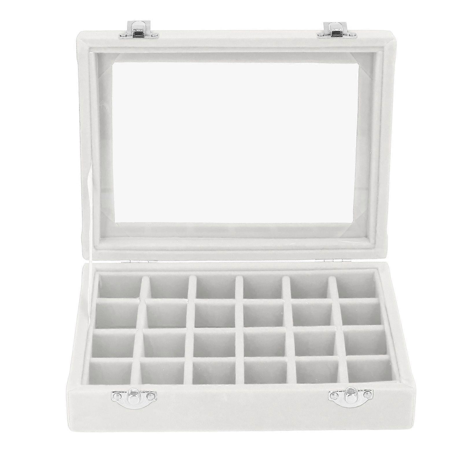 Small Velvet Jewelry Box Organizer 24 Compartments Jewelry Case Earring Rings Storage Box Jewelry Case with Locks White