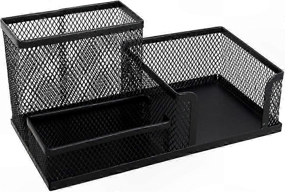 Three-Section Metal Pen Organizer with Black Wire Design for Desk Storage
