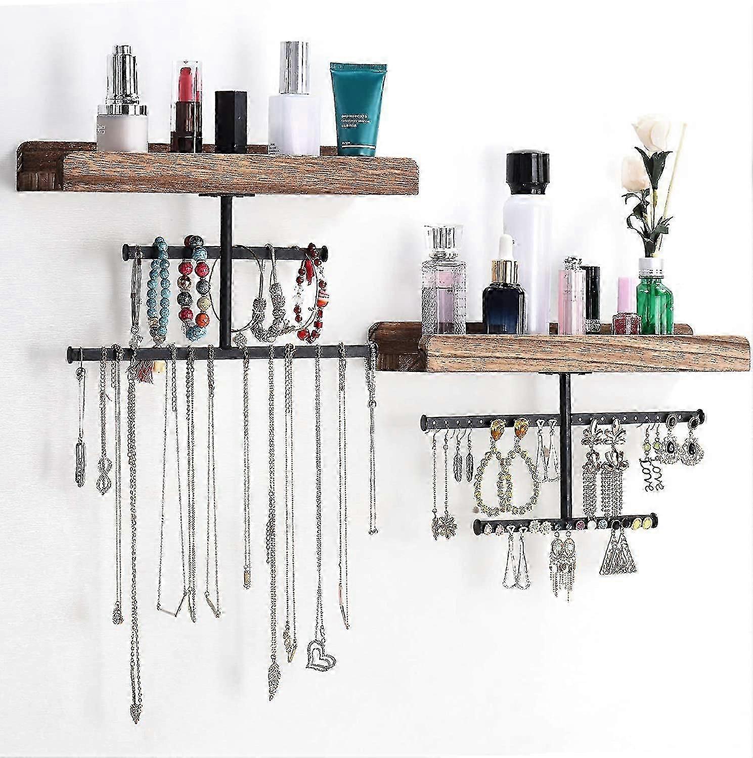 Hanging Wall Mounted Jewelry Organizer With Rustic Wood Jewelry Holder Display For Necklaces Br
