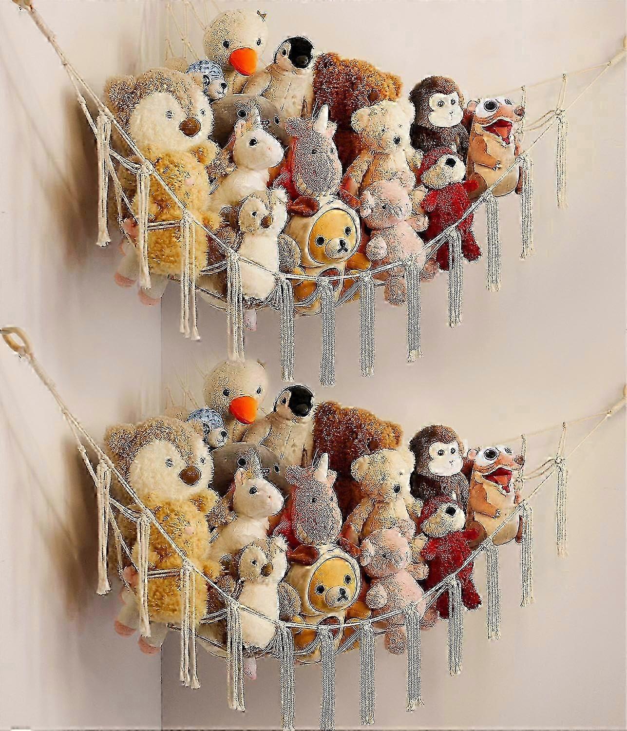 Two-Pack Hanging Organizer for Stuffed Animals, Net Toy Holder for Corner Storage, Boho Style Room Decoration Hammock for Plush Toys