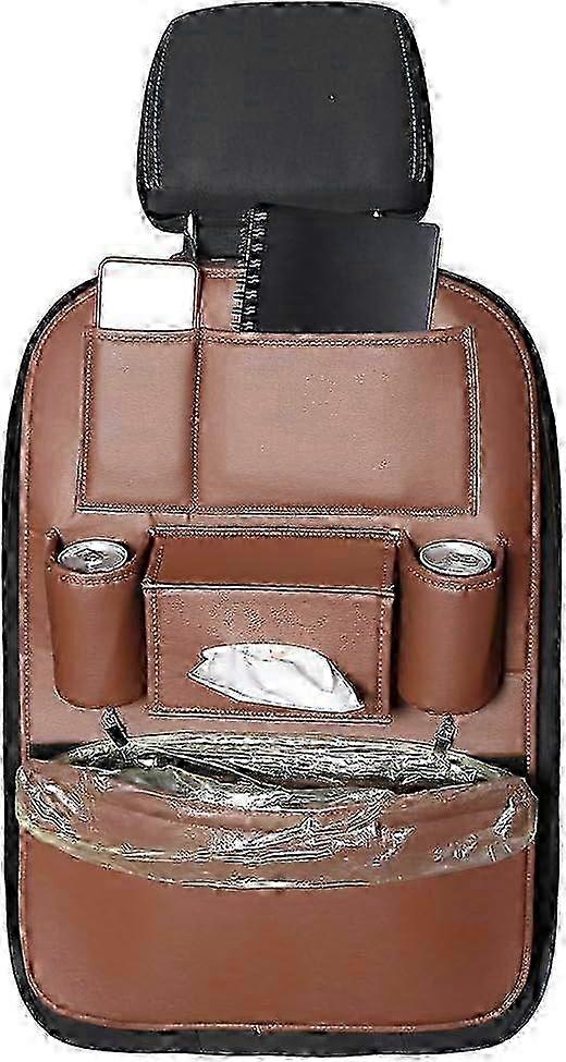 Universal Car Seat Organizer, 4th Generation Enhanced Car Back Seat Organizer, Waterproof PU Leather Car Organizer 1pc (Brown)