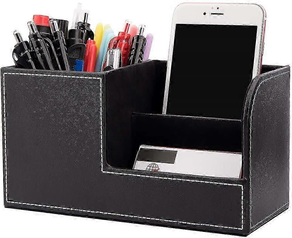 Desk Organizer, Multifunctional Pen Holder, Stylish Black Pu Leather Desk Stand for Stationery Storage Box, Business Cards, Pens, Mobile Phones