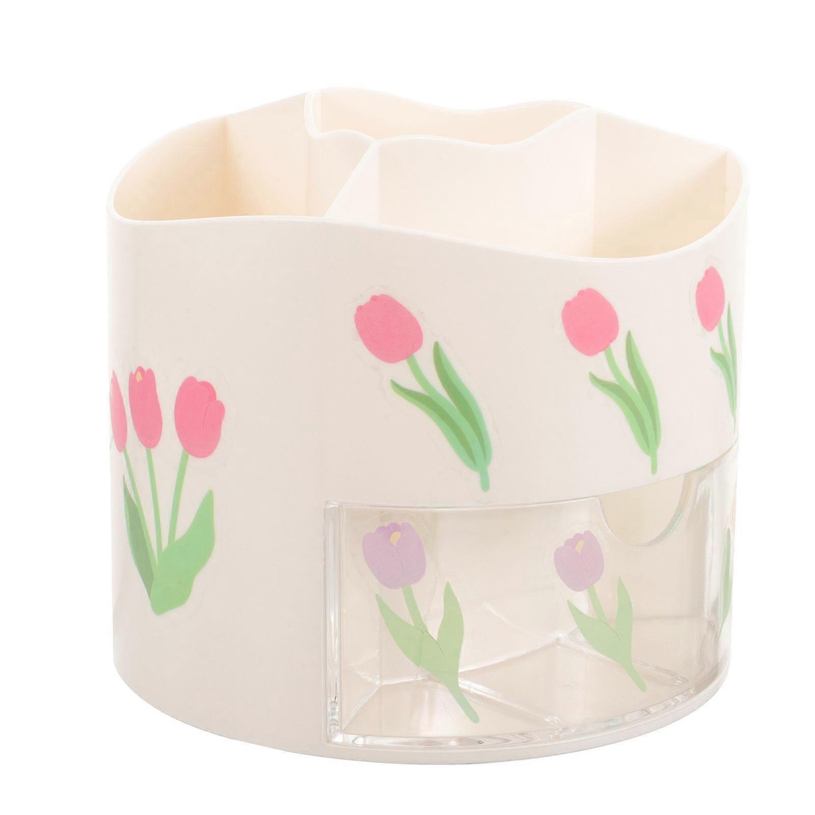 Rotating Desk Organizer for Makeup Brushes Pens with Storage Compartments Beige Plastic 7.5 Inches