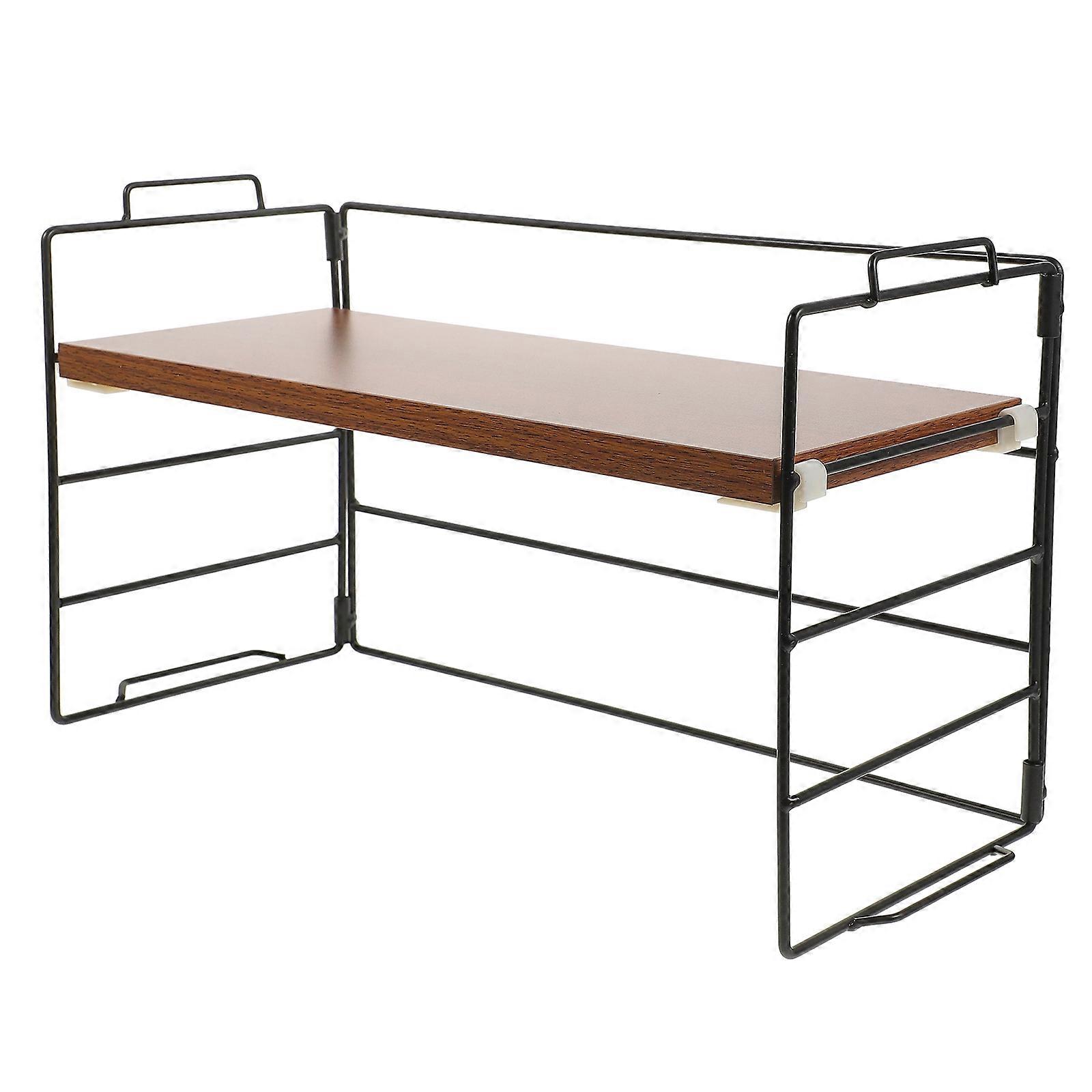Wood and Iron Small Desk Organizer with Light Brown Finish for Kitchen Use 12.5 x 6.3 Inches