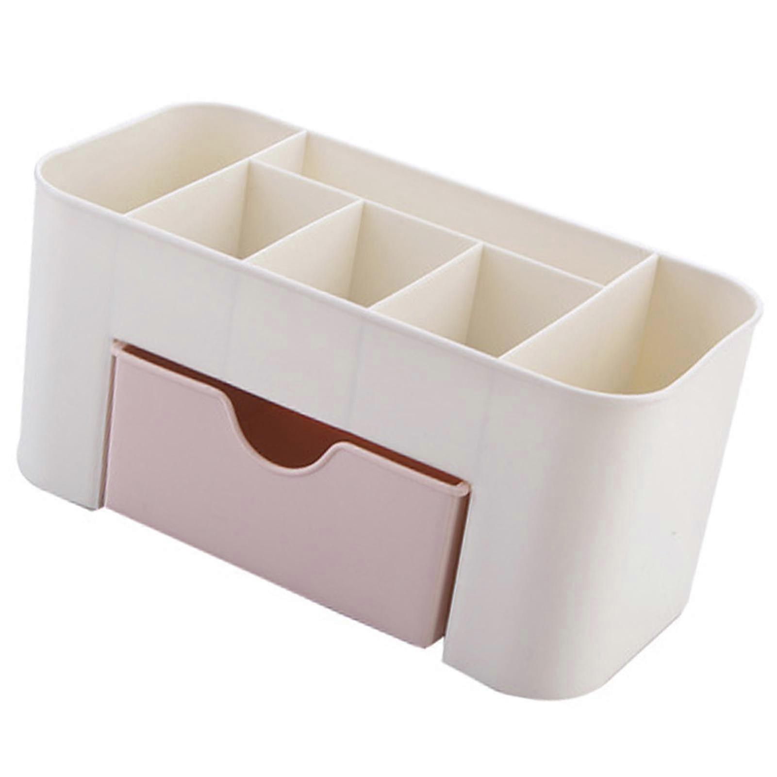 Cosmetics Makeup Organizer ,PP Multifunctional 6 Compartments Makeup Desk Organizer with Drawer ,Pink