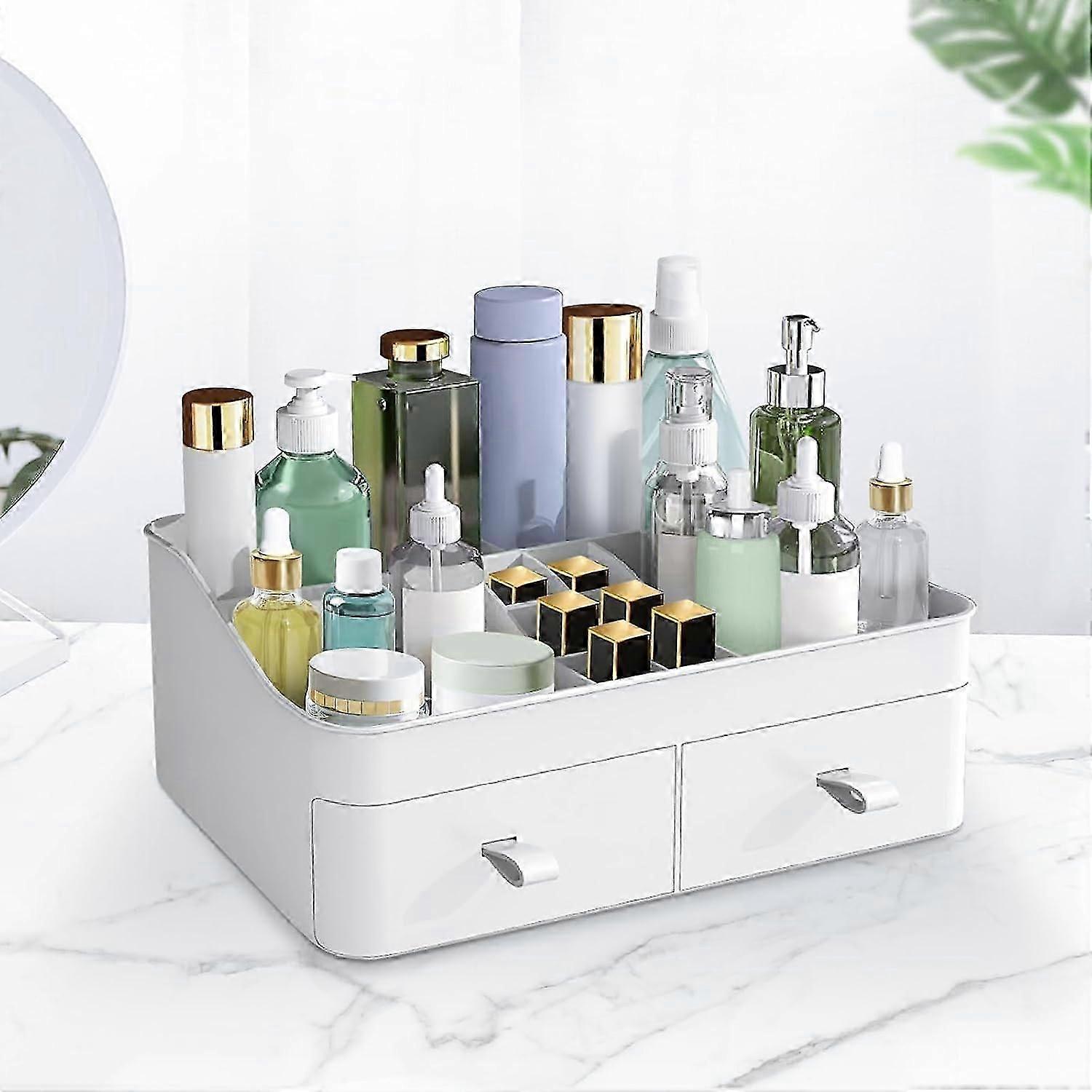 Make up Organizer Large Capacity Cosmetic Skincare Organiser with 2 Drawers Fits Jewelry Brushes Lipsticks Eyeshadow Lotions