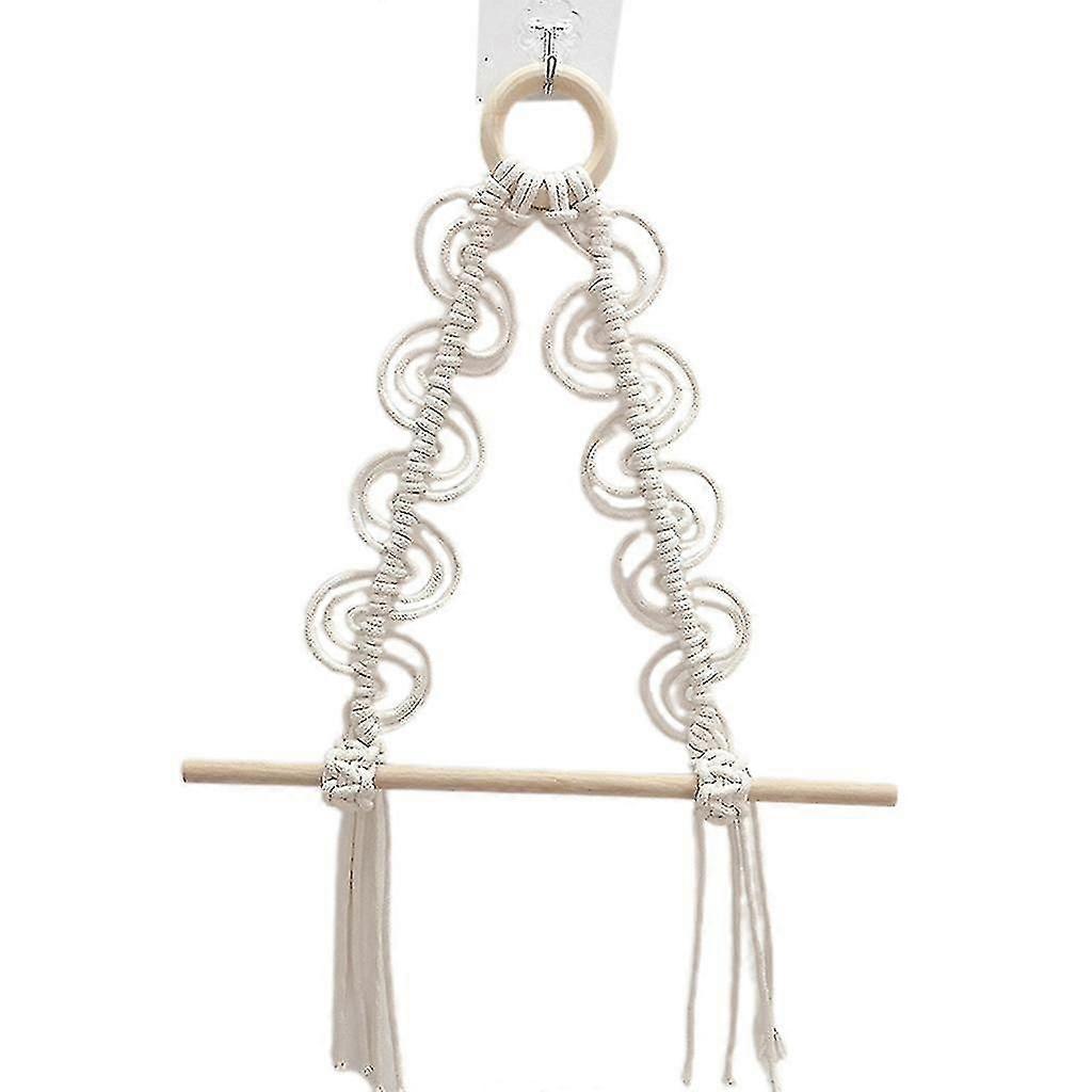 Woven Tapestry Tissue Organizer Without Nails | Natural Beech Wood and Cotton Rope, Easy Installation, Vintage Style, White