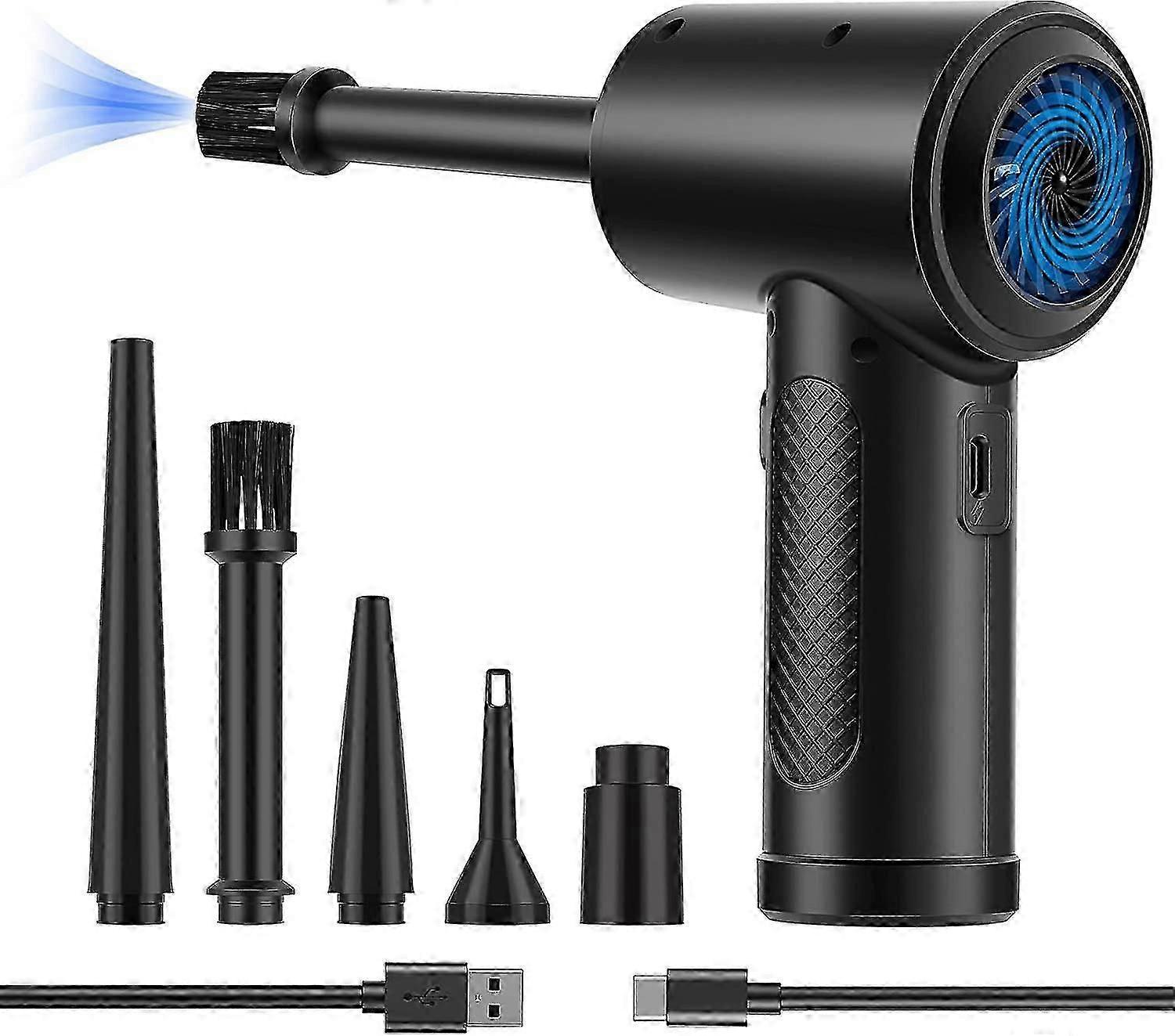 Compressed Air Duster,fulljion 3-gear To 51000rpm Electric Air Duster Portable Air Blower With Led Light, 6000mahrechargeable Cordless Air Duster For