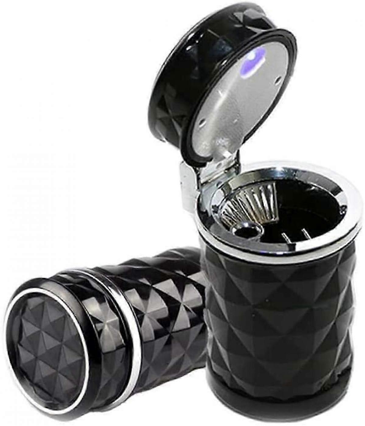 XYC Auto Car Cigarette Ashtray, Portable Blue LED Light Car Ashtray Cup Holder with Lid, Vehicle Cigarette Ashtray Ash for Home, Office (Black)