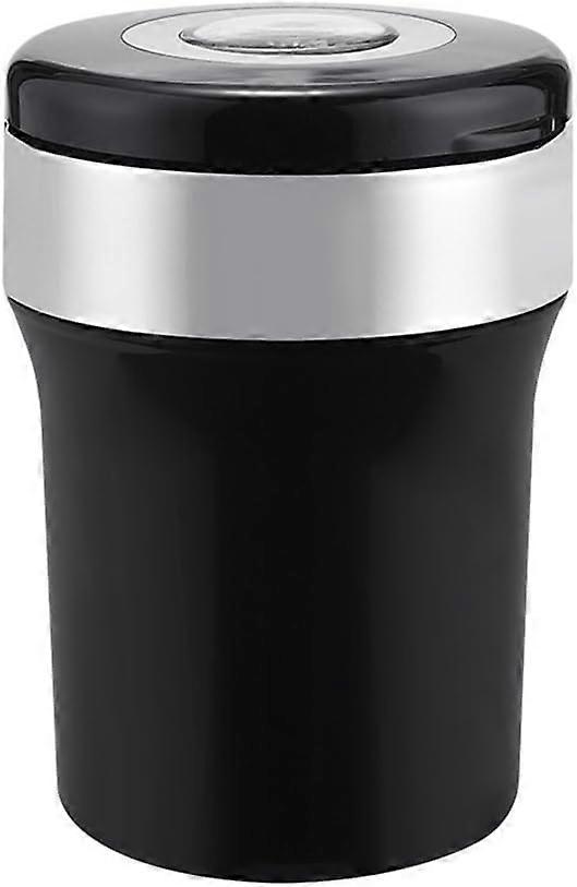 Portable ashtray with LED light compass and cover, black / silver, for car