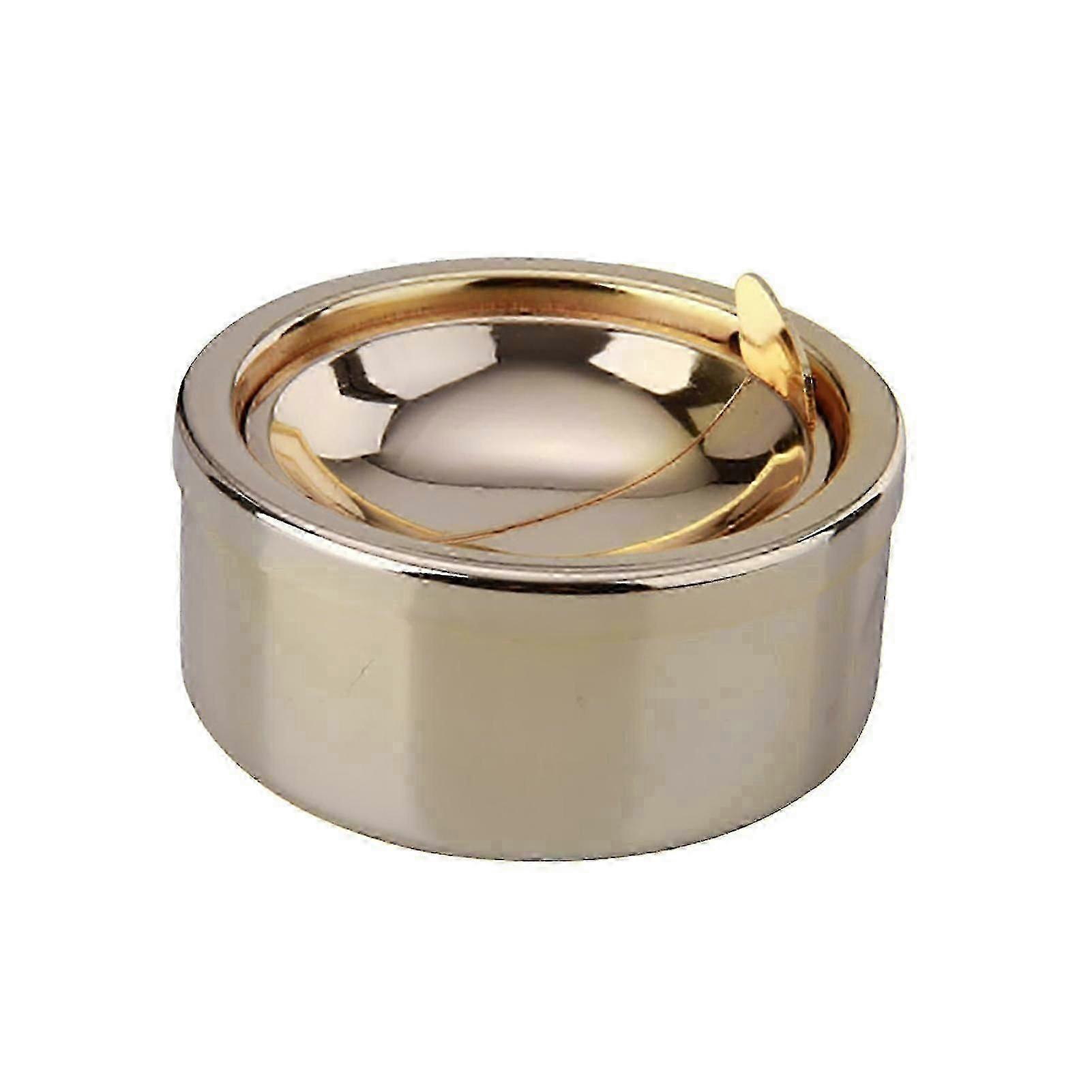 Compact Smokeless Metal Ashtray Windproof Round Ashtray With Lid For Home