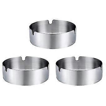 Stainless Steel Ashtray 3 Pcs, Round 10cm Windproof Cigarette Cigar Ashtray Bin Set For Home Office Hotel Restaurant