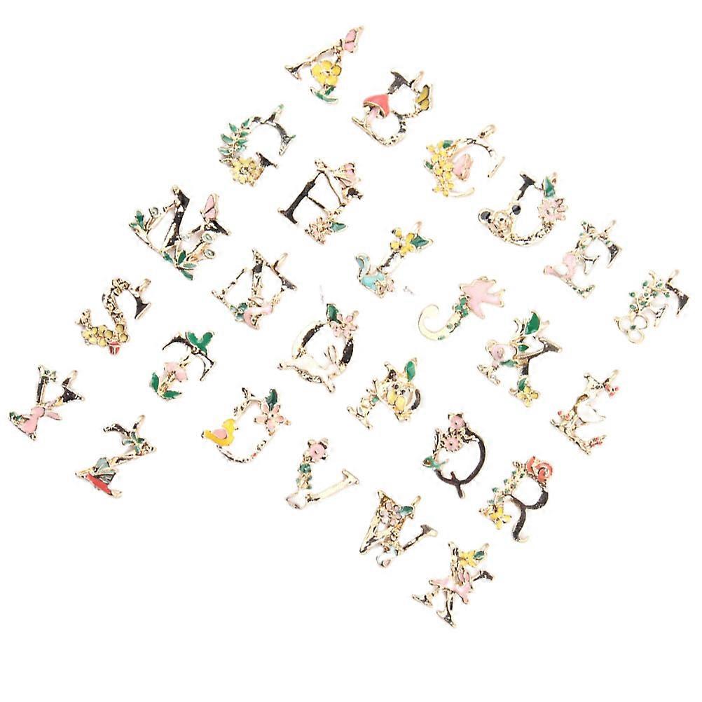 A-Z Metal Letter Charms Jewelry Decorations Diy Flower Letter Shape Assorted Color 1.8x1.3cm 26Pcs