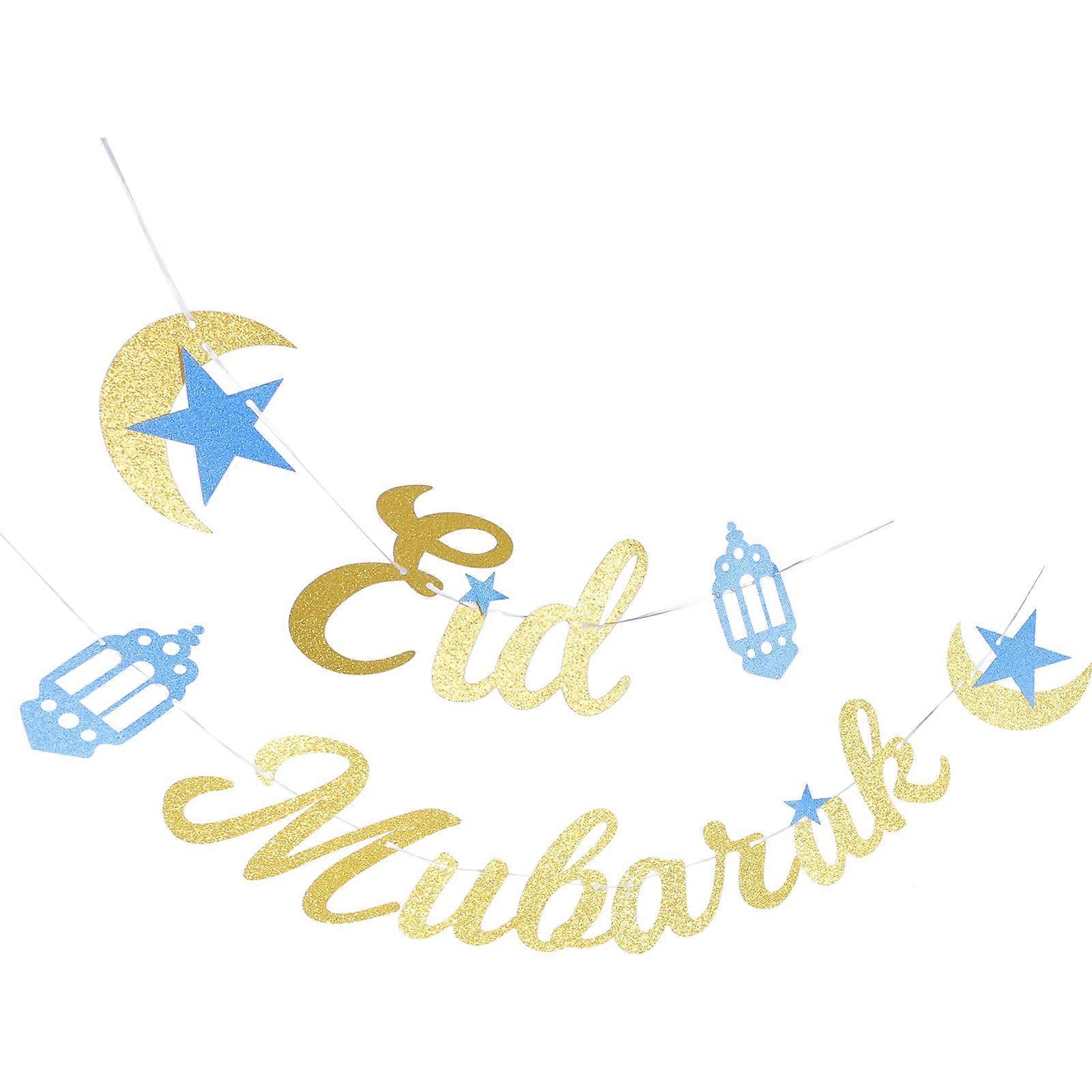 This is a delicate Eid party banner. Not easily damaged, Eid themed prints, the design is simple and fun to use for the party or other celebration activities. It can add fun and cheer to your party and let you have a good time with your friends. Features - ColorGolden - Material: Paper - Size: About 16.80X15.80X0.10cm/6.60X6.21X0.04in - Fine workmanship ensures the delicate details design, which is decorative practical to use. - This beautiful Eid themed banner is ready to decorate the entire house, easy to create a cheerful party atmosphere. - The hanging banner will be excellent for your party, great for both indoor and outdoor events. - The banner pendant comes with simple structure, making it very easy to install and use. - When holding an Eid party, install banners on the walls, doors and windows to attract everyone's attention and let friends have an unforgettable party. Package list: 1 x EID Banner 1 x Mubarak Banner