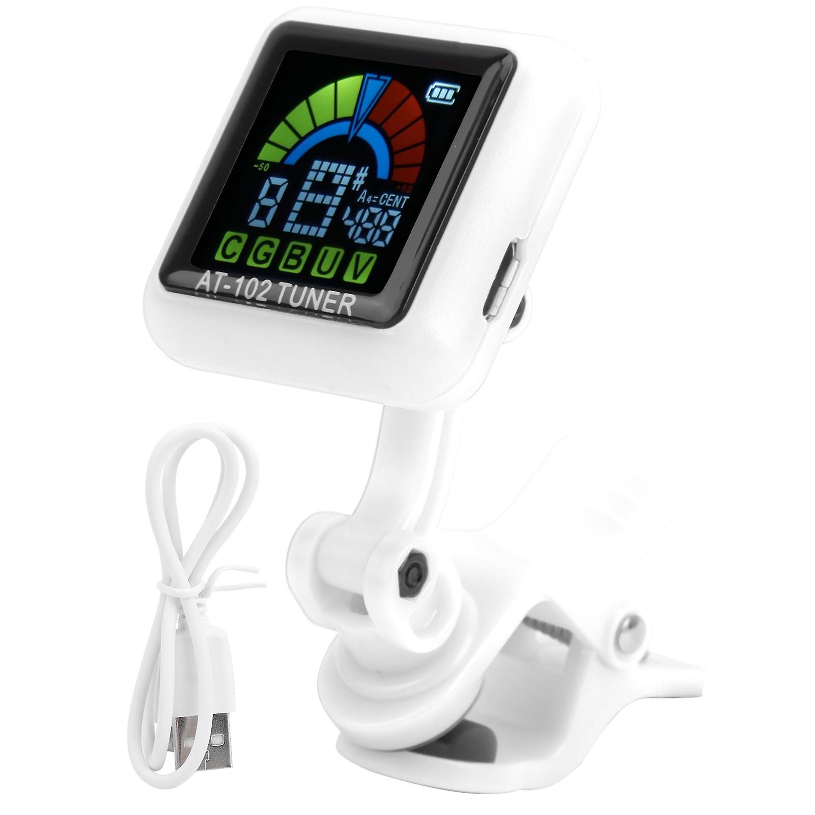 Clip-On Guitar Tuner USB Rechargeable with Built-In Battery for Violin Ukulele AT102 White Accurate Digital Tuning
