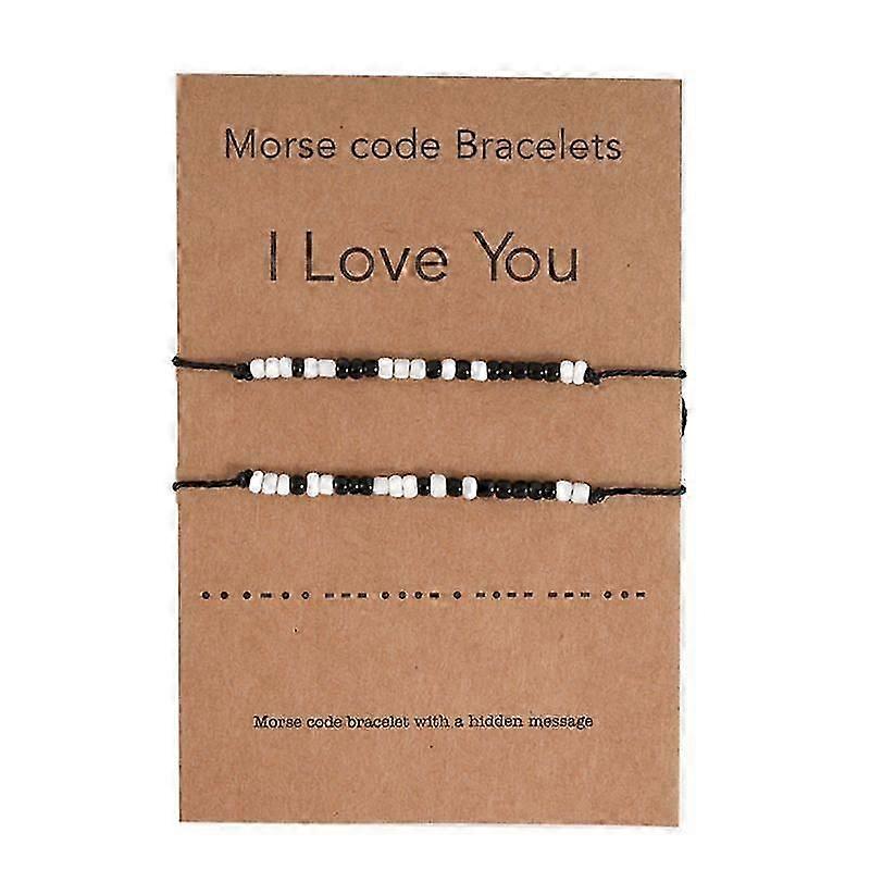 Morse Code Dainty Beaded Bracelet 2 Pcs I Love You Friendship Bracelets Jewelry
